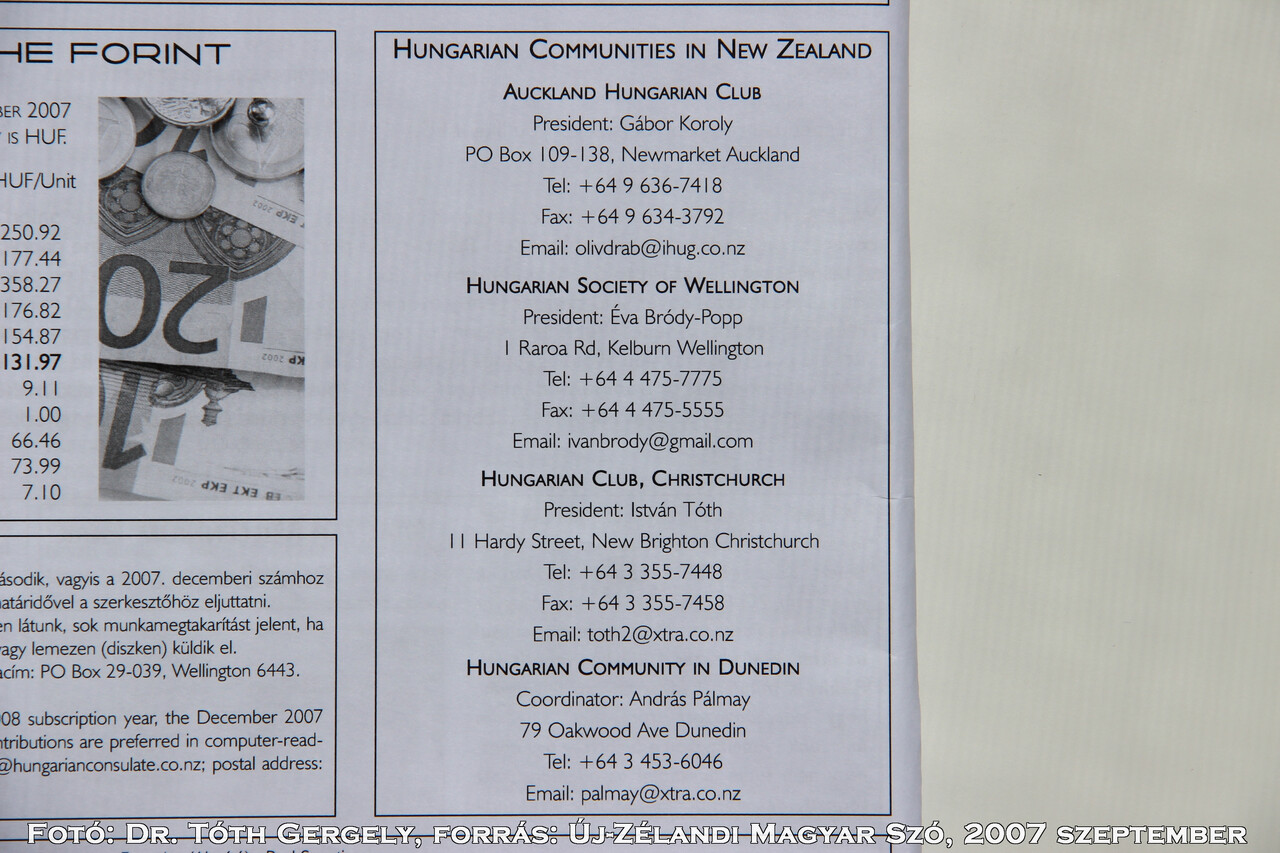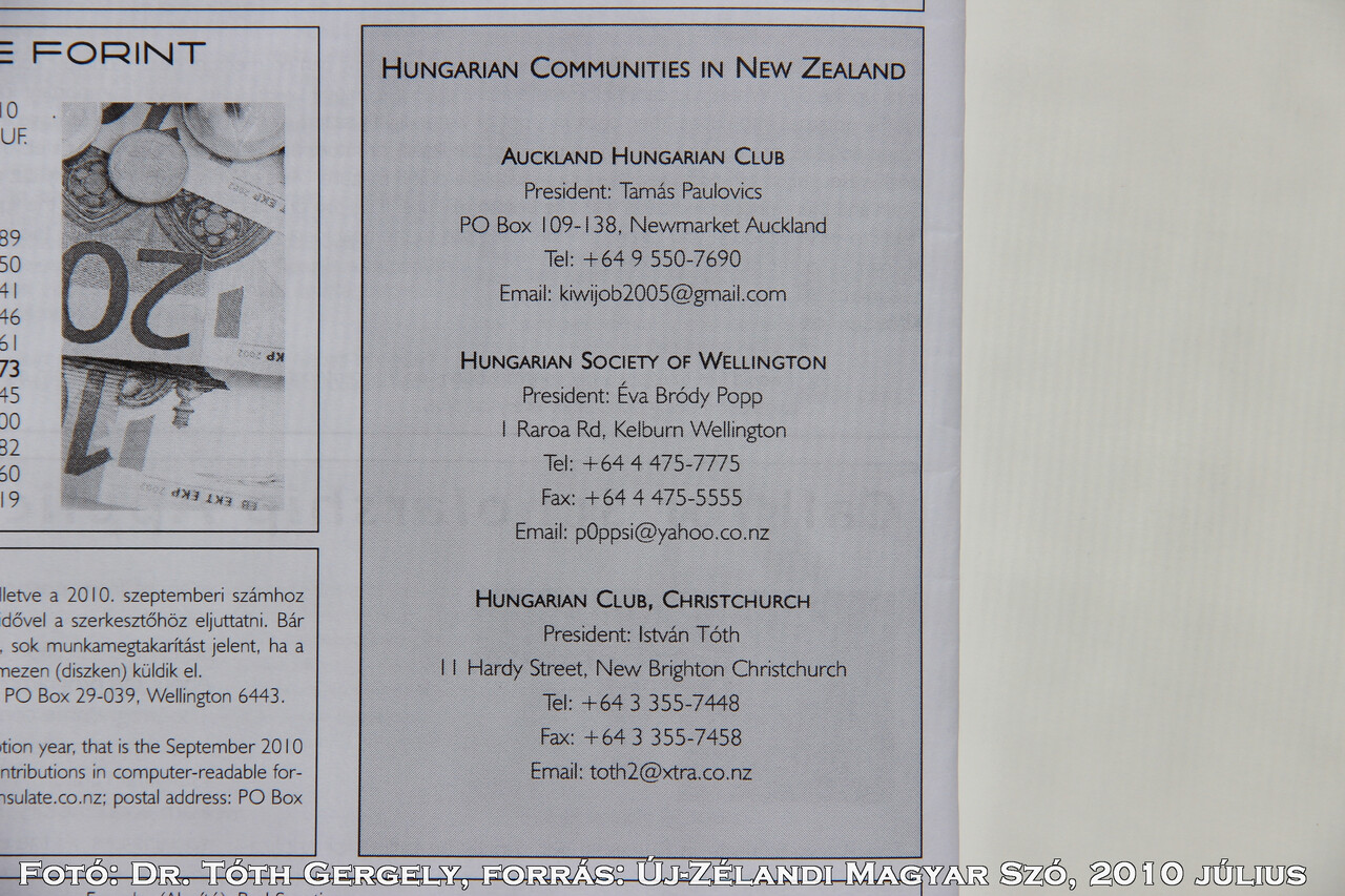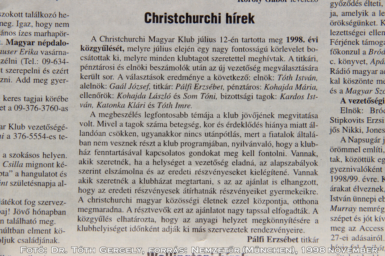 4. Ausztrália, Új-Zéland és Ázsia Új-Zéland - New Zealand Christchurch Magyar Klub - Hungarian Club