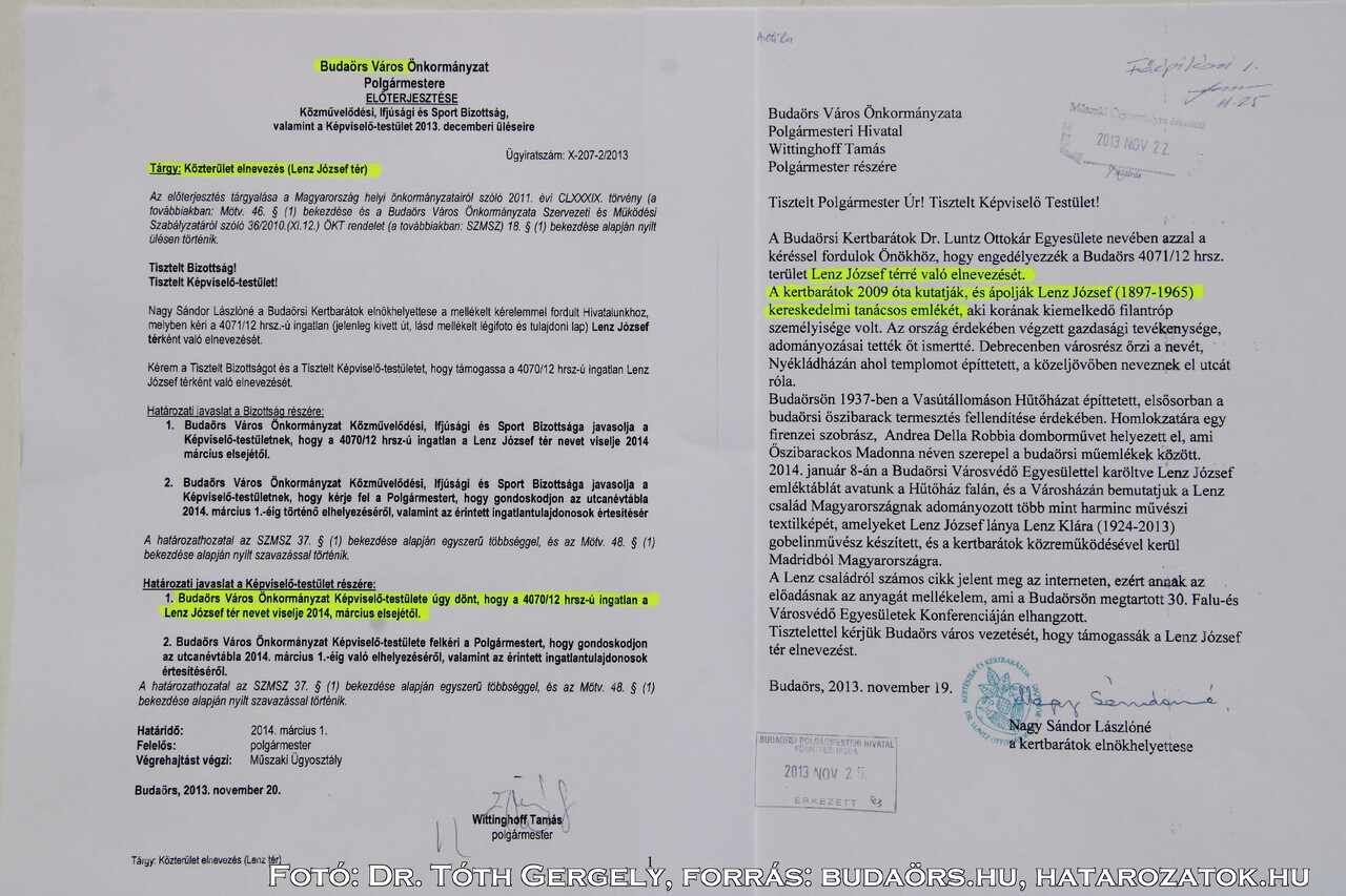 Budaörs, Lenz tér - József Lenz ( South America)