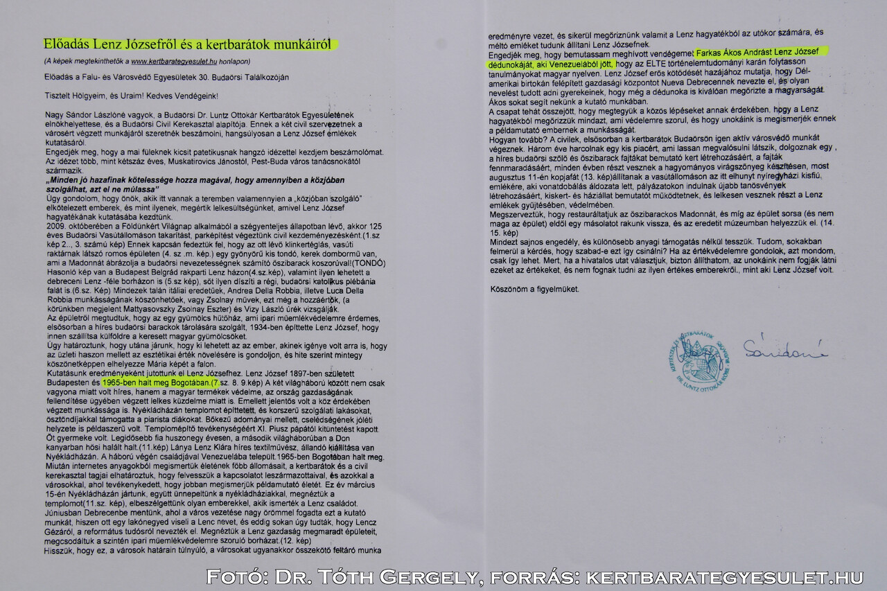 7. Magyarország és Kárpát-medence Budaörs, Lenz tér - József Lenz (South America)